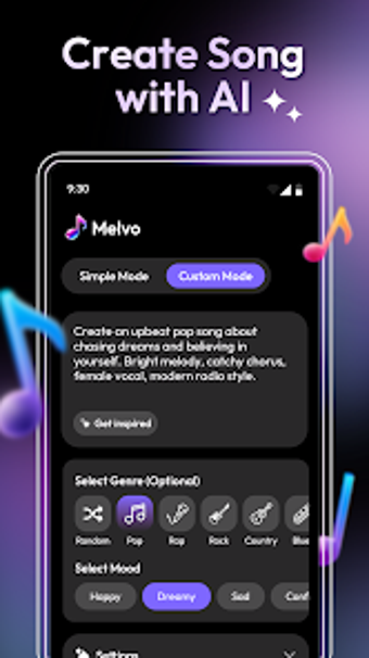 ميلفو - مولد الموسيقى بالذكاء الاصطناعي هو تطبيق رائد مصمم لمستخدمي أندرويد، مما يسمح لأي شخص بإنشاء موسيقى أصلية بسهولة. باستخدام تقنية الذكاء الاصطناعي المتقدمة، يمكن للمستخدمين توليد أغاني مكتملة من خلال إدخال وصف للمزاج أو النوع المطلوب. يقدم التطبيق مجموعة متنوعة من الخيارات، بما في ذلك الأغاني الكاملة مع الأصوات، والمقاطع الموسيقية الآلية، والألحان المخصصة، مما يلبي مجموعة واسعة من الأنماط الموسيقية - من البوب والراب إلى اللو-فا والساوندتراكس السينمائية.